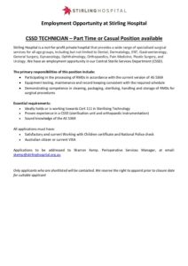 Advert for CSSD Technician February 2026
